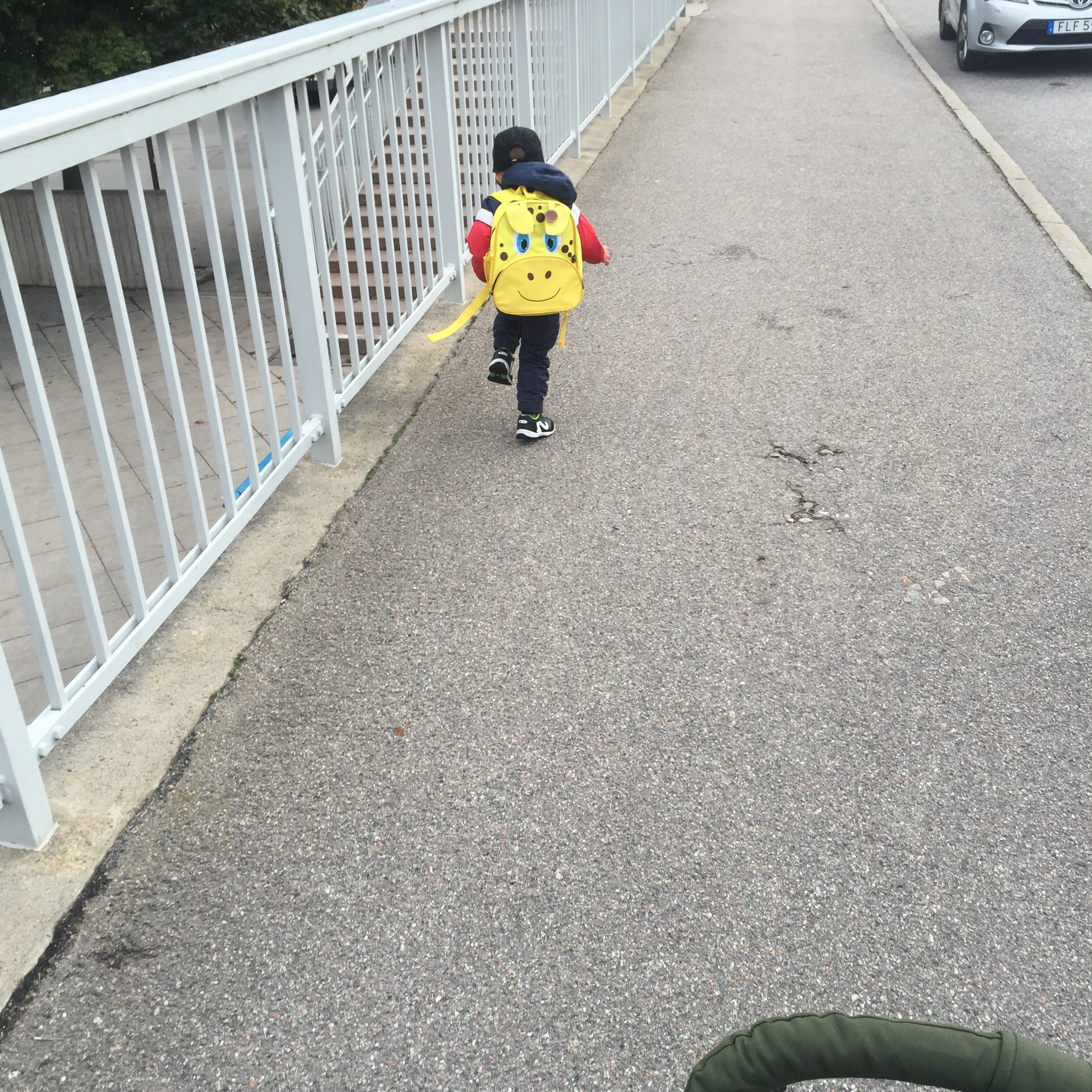 En glad kille på torsdagsmorgonen. Sprang till dagis med sin tomma ryggsäck!!
