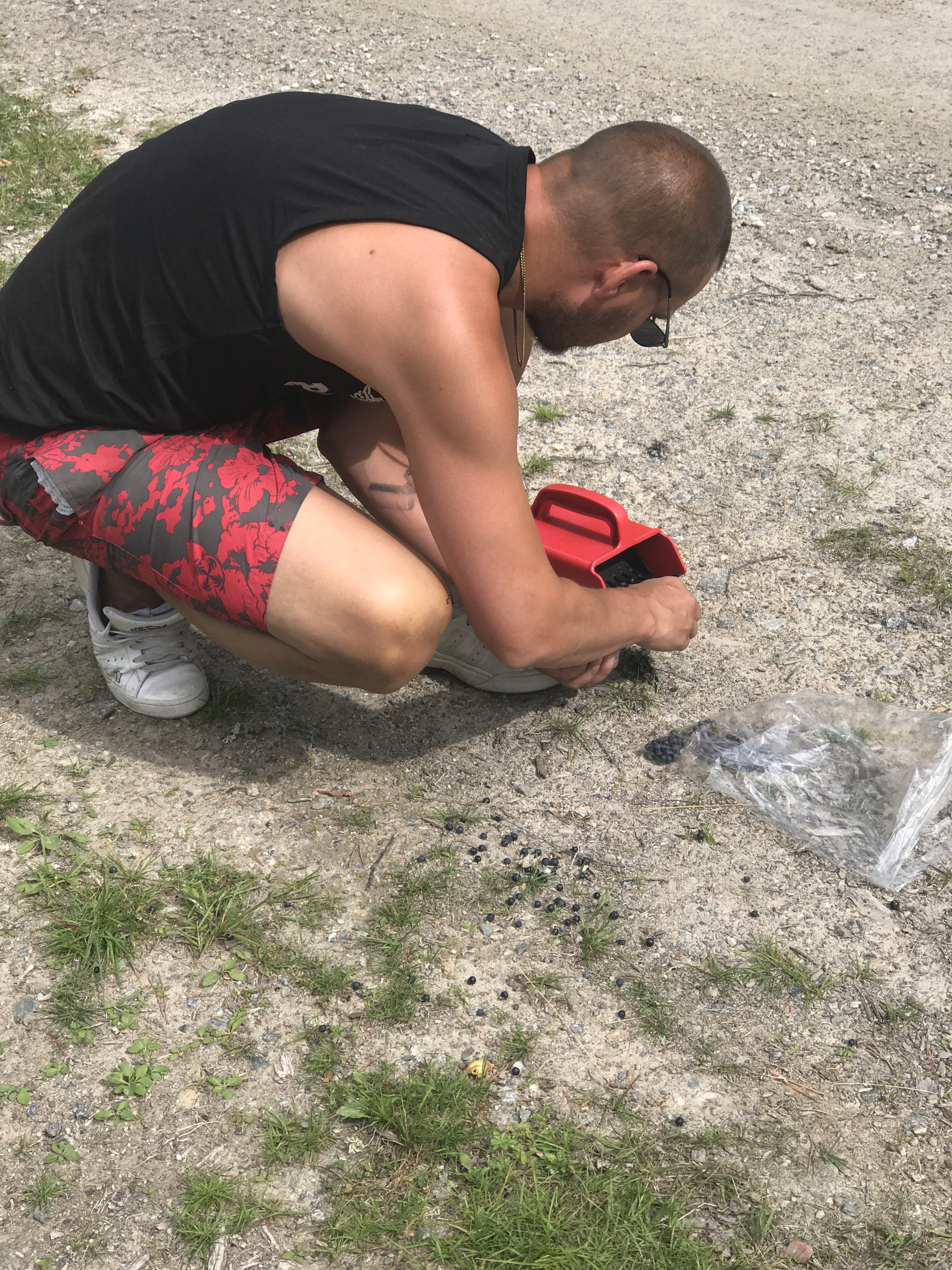 Jo, iof, måste få ner i text hur jäkla klumpig jag är. Jag, mamma & brorsonen skulle ut i skogen o plocka svamp. Jag vandrade iväg för mig själv, vilket jag har en tendens att göra, men den här dagen hade jag ett helvete med mygg, flugor, rötter, grenar och spindelnät.. Efter ett tag ringer min brorson och undrar vart jag är, för som hade hittat en guldåder av gula kantareller. Tillslut ställer han sig o vrålar mitt namn och jag lyckas lokalisera hur jag ska hitta dom. Kommer på den briljanta idén att gena över ett berg.