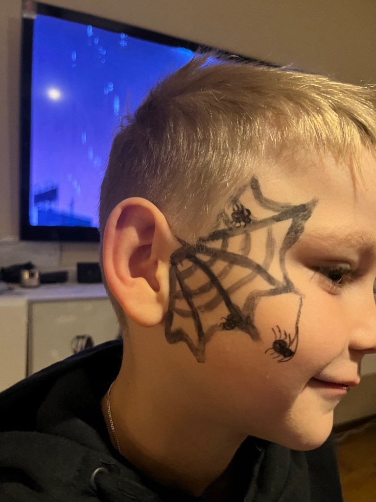 Idag har de ”Halloween-mys” på barnens skolor, så de fick vara lite sminkade om de ville. Sigge & Ebba ville såklart! Men Maxi är för ”stor”, haha..